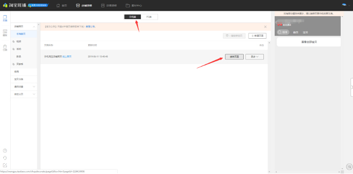 选择首页点击,进入页面编辑内容,将图文类,定向模块,拖至店铺首页醒目位置,最后保存发布。