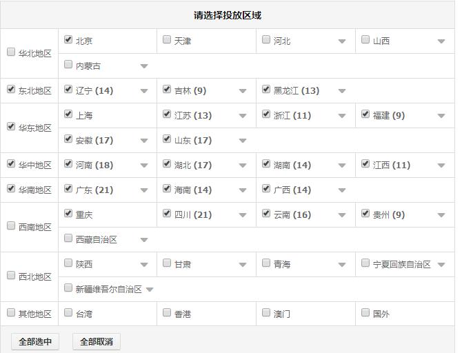 对于地域的选择,我们尽量的去选择,产品需求比较高的区域,前期可以以省为单位进行选择,剔除掉哪些没有转化,没有成交的地区,以及偏远邮费较高的地区。这个老司机是很熟悉的,另外也可以用生意参谋的流量地图来查看各个地域的流量情况。直通车的地域其实很重要,选择的好的话,直通车的各项数据指标可以提升的很快,进行关键词的质量分提升,当然这是另外一个话题了。