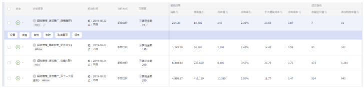四类计划综合提升,促进拉新计划,促进收藏加购计划,促进成交计划以及活动计划,投放数据呈现如下: