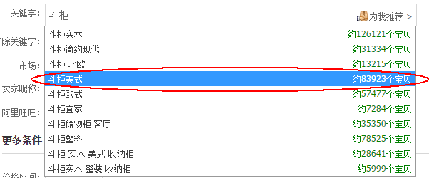 但是这个词延伸到斗柜实木整装经济型的时候已经无法搜索到宝贝了。这个时候不用怕不用慌,我们继续拿核心词去搜,再去寻找二级词。