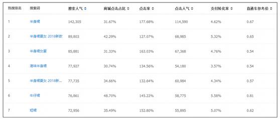 这里我们要进行的一个工作就是拆词,把这些关键词全部都拆成一个一个的单词,然后做去重处理,比如:港味半身裙,我们就可以拆成“港味”、“半身裙”,然后你去找出现频率很高的关键词有哪些。比如,你发现“港味”这个词出现的频率很高,那么你在详情页设计中,不管是模特的选择,还是场景的选择,都应该去突出“港味”这个核心属性。